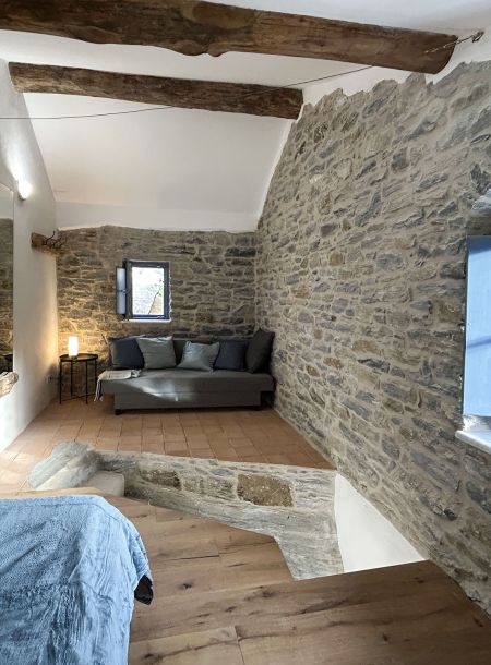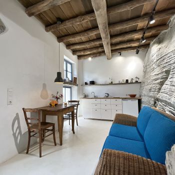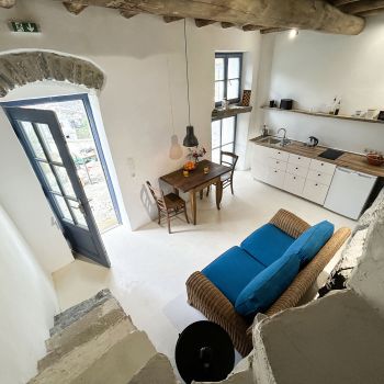 Αυτό το ευρύχωρο διώροφο διαμέρισμα βρίσκεται σε ένα παραδοσιακό ικαριώτικο πέτρινο σπίτι, χτισμένο μέσα στους φυσικούς βράχους της κοιλάδας Φύτεμα.
