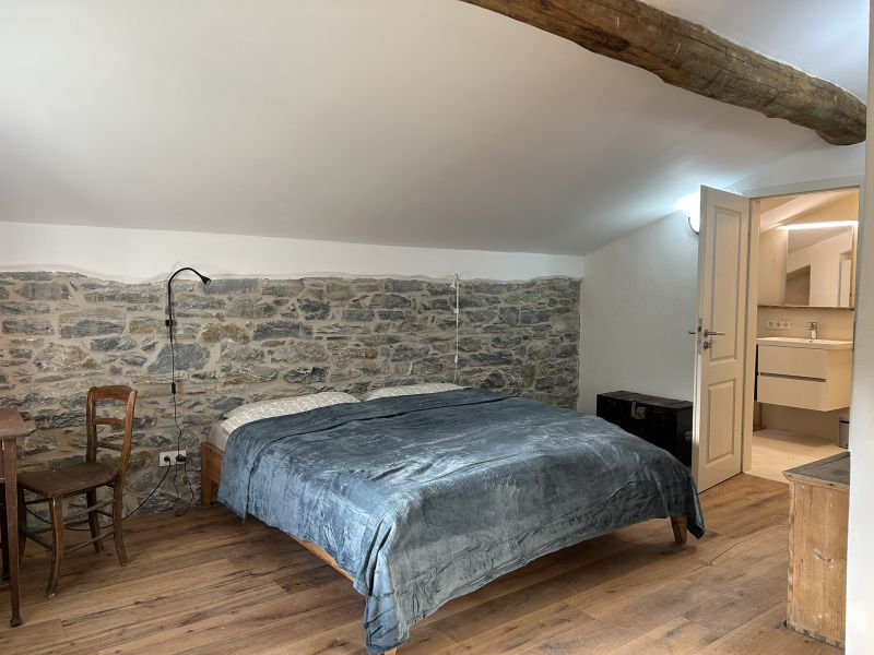 Στον επάνω όροφο, οι δύο χώροι ύπνου μπορούν να χωριστούν με κουρτίνα, προσφέροντας τόσο ανοιχτότητα όσο και ιδιωτικότητα.