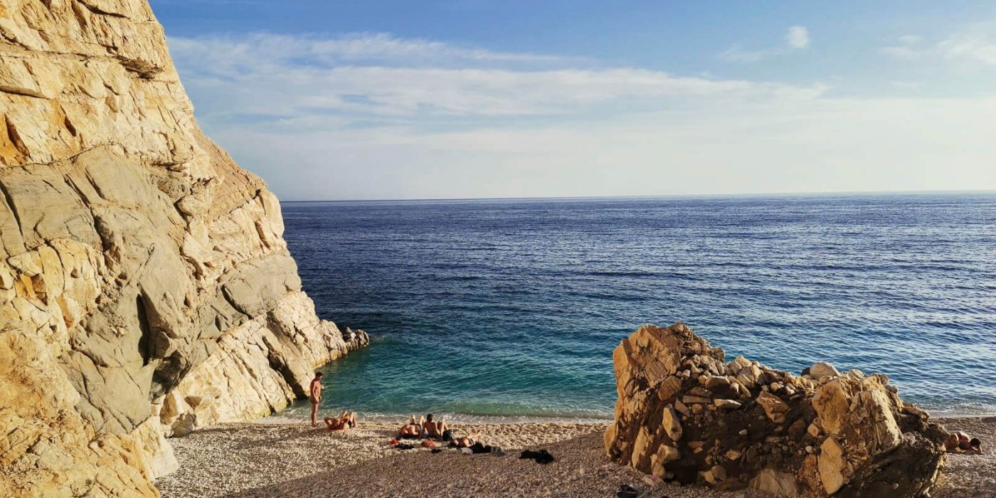 Probably the most famous beach on Ikaria lies on the south coast near the village of Manganitis. Seychelles Beach truly lives up to its name: smooth white pebbles, turquoise water and dramatic rock formations create a landscape reminiscent of tropical islands. The beach can only be reached on foot via a short path or by boat – but the effort is rewarded with one of the most spectacular swimming spots in the Aegean.