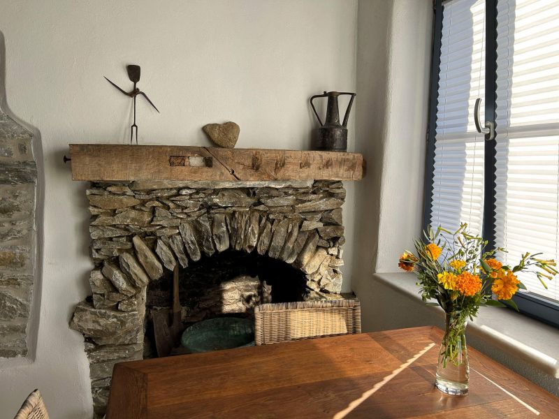 Das traditionelle Steinhaus grenzt an einer Seite an die natürliche Felswand. Das Bad ist ganz in den Fels hinein gebaut. Das ergibt ein ganz spektakuläres Wohngefühl und den Eindruck, mitten in der Natur zu sein. Die Terrasse hat eine wunderschöne Aussicht auf das Meer, den Strand von Fytema und die Berge von Messaria. Die Wohnung ist 2023 mit ökologischen Materialien im traditionellen Stil ausgebaut worden. Zum Strand sind es nur 200 m.