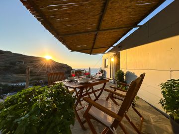 Die gemütliche 2-stöckige Wohnung ist in einem traditionellen ikariotischen Steinhaus, dass an den natürlichen Felsen des Fytema-Tals gebaut ist. Vom Wohnzimmer und vom Schlafzimmer aus hat man einen wunderbaren Meerblick.