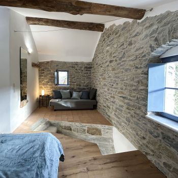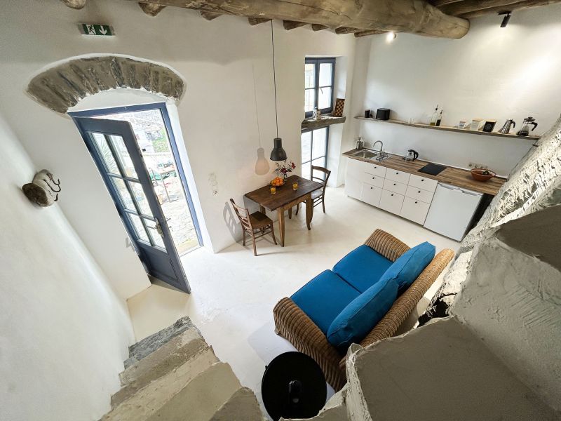 Αυτό το ευρύχωρο διώροφο διαμέρισμα βρίσκεται σε ένα παραδοσιακό ικαριώτικο πέτρινο σπίτι, χτισμένο μέσα στους φυσικούς βράχους της κοιλάδας Φύτεμα.
