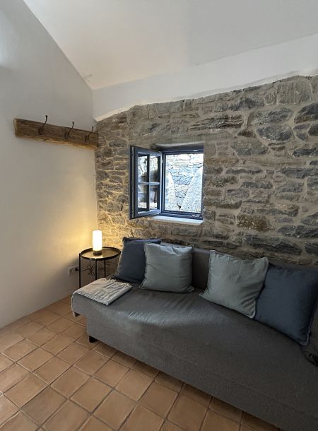 Με επιφάνεια 35 τ.μ., είναι το μεγαλύτερο από τα διαμερίσματά μας. Από το υπνοδωμάτιο μπορείτε να απολαύσετε όμορφη θέα στον κήπο και στην κοιλάδα που οδηγεί προς το ορεινό χωριό Ακαμάτρα.