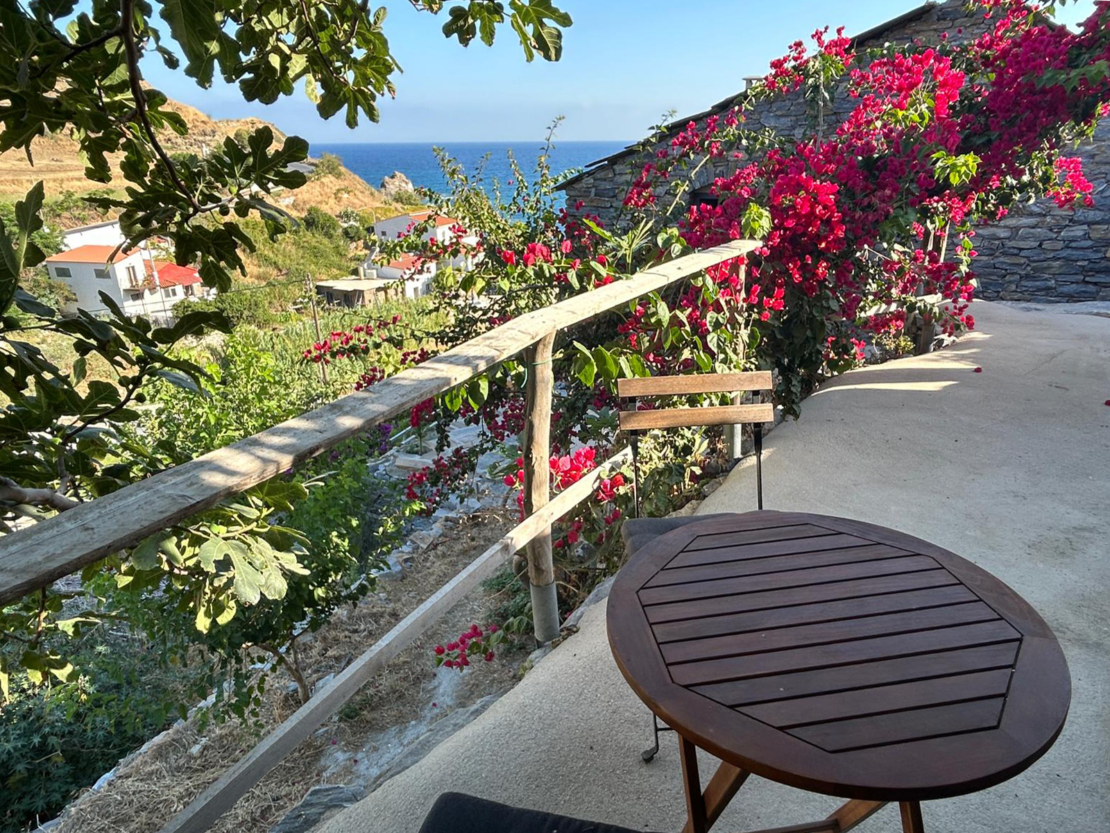 Die geräumige 2-stöckige Wohnung ist in einem traditionellen ikariotischen Steinhaus, dass an den natürlichen Felsen des Fytema-Tals gebaut ist. Mit 35 qm ist sie unsere größte Wohnung. Vom Schlafzimmer aus hat man einen wunderbaren Blick in den Garten und ins Tal in Richtung dem Bergdorf Akamatra.