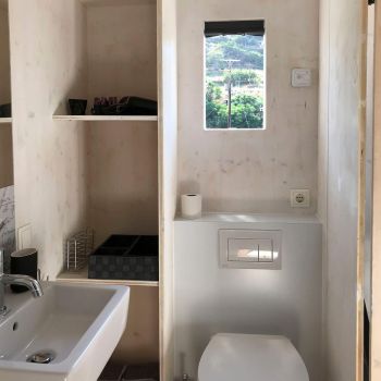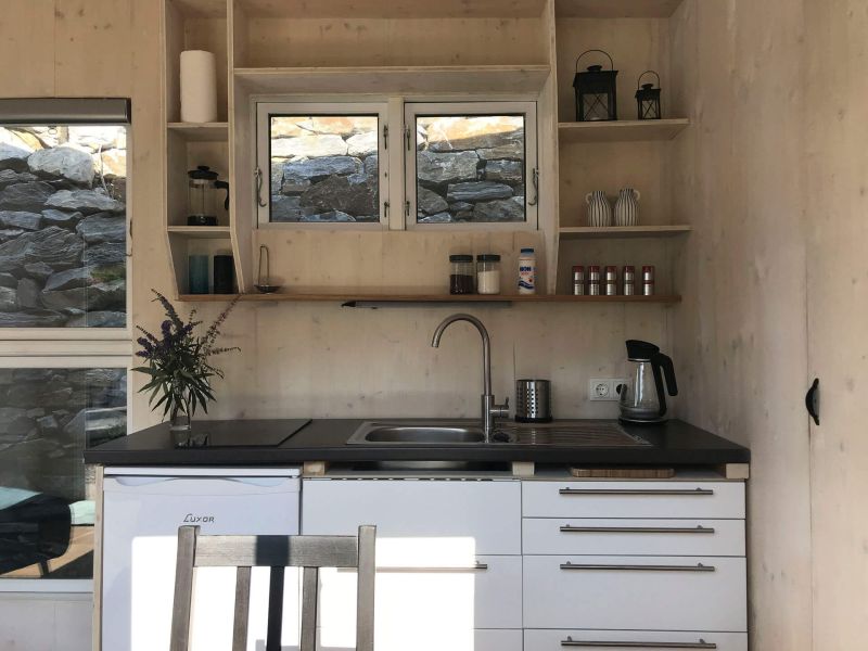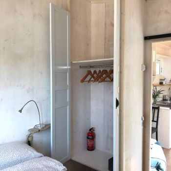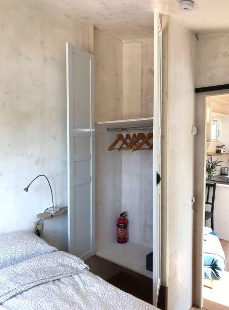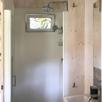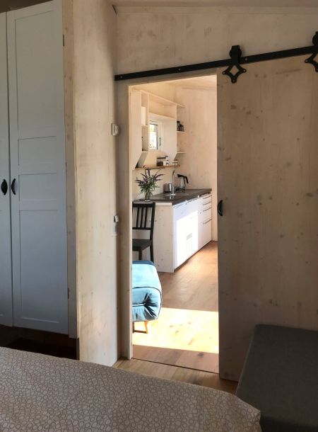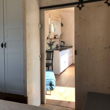 The pergola creates a lovely shaded spot next to the Tinyhouse. Together with it, the interior remains pleasantly cool even during the hottest days in August. An additional, very quiet ventilation system provides a refreshing breeze.